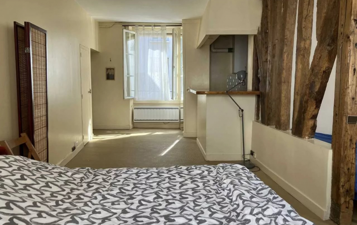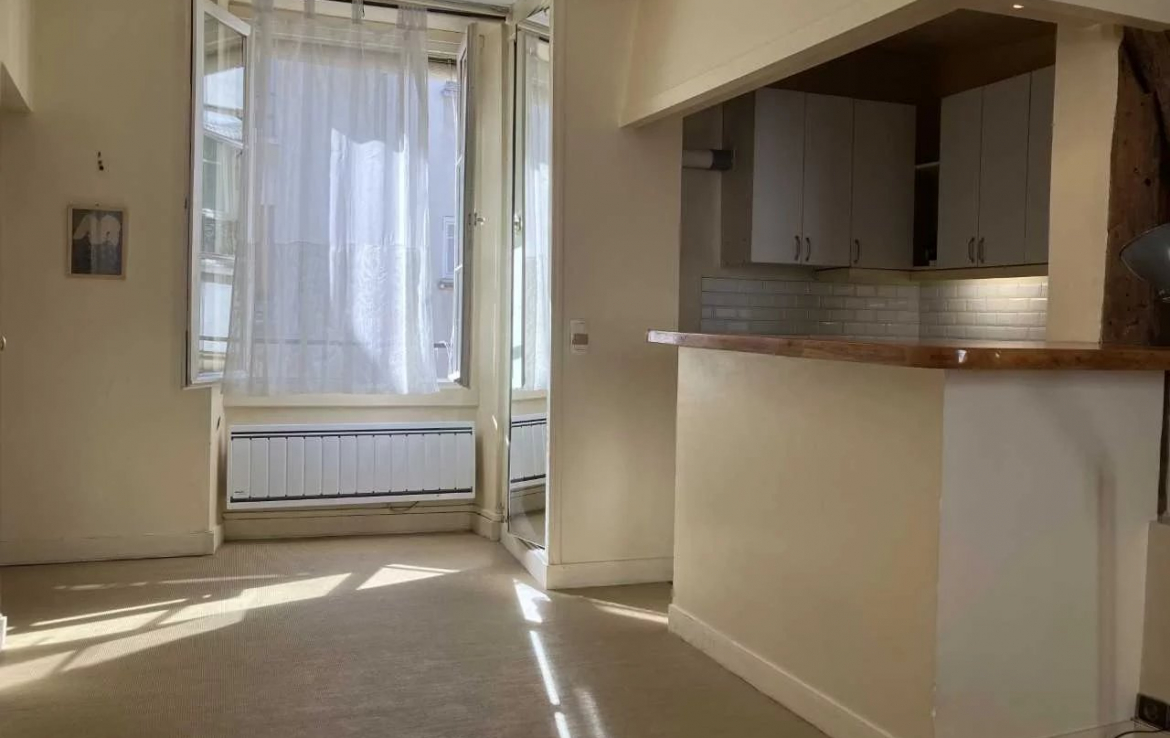 Le Marais. Nous vous proposons, dans un immeuble datant du 18ème, au 3ème étage, un 2 pièces de 53.02 m² Loi Carrez. Cet appartement se compose d’une entrée, d’une cuisine semi-ouverte, d’un vaste double séjour de 37 m² (possibilité de créer une ou deux chambres), d’une grande salle de bains de 7 m² et des toilettes séparés. A rénover. Une cave complète ce bien. Cet appartement vous séduira par son potentiel, par sa luminosité par son côté traversant, et par sa localisation idéale en plein cœur du Marais. Les informations sur les risques auxquels ce bien est exposé sont disponibles sur le site Géorisques : www.georisques.gouv.fr ; Nombre de lots de copropriété : NC ; Aucune procédure en cours ; Montant des charges annuelles d’environ : 592.04€ ; Honoraires à la charge de l’acquéreur inclus dans le prix de présentation de 4,83 % TTC *(Prix net vendeur : 620.000€) ; N° de mandat : 881.